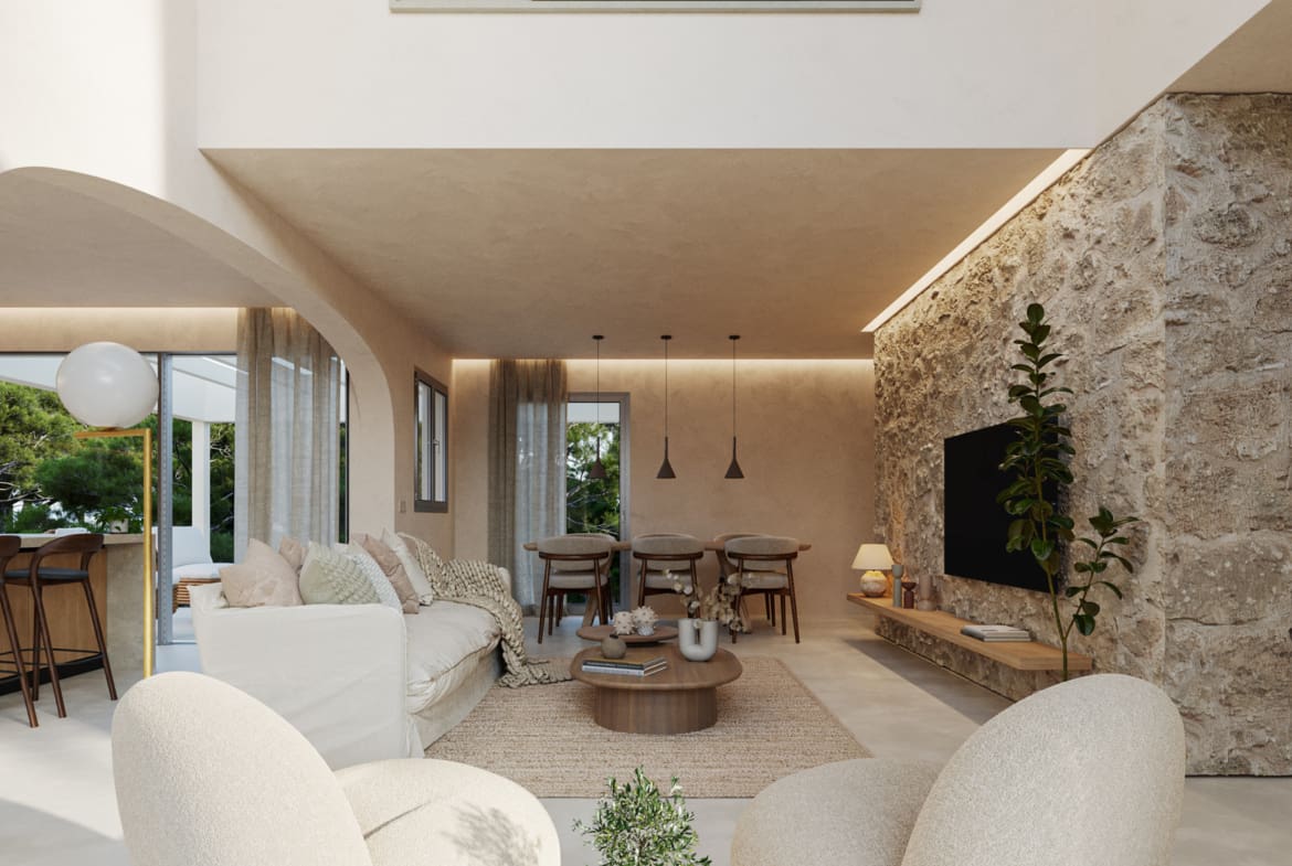 The outdoor area will feature a private swimming pool, perfect for relaxing and enjoying the Mediterranean climate.