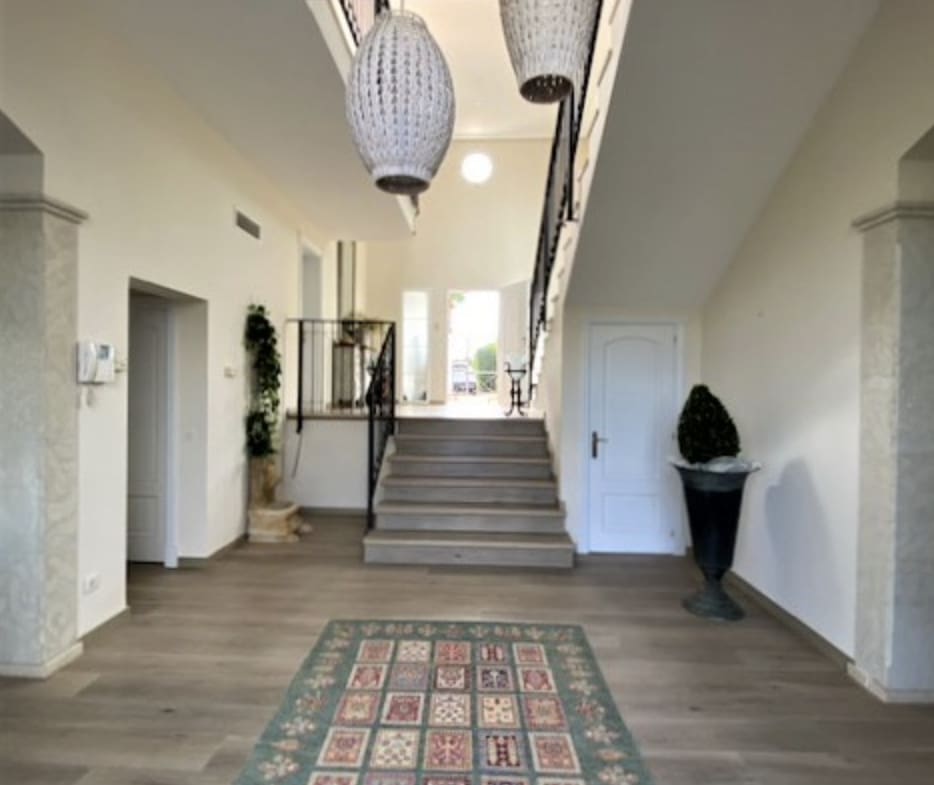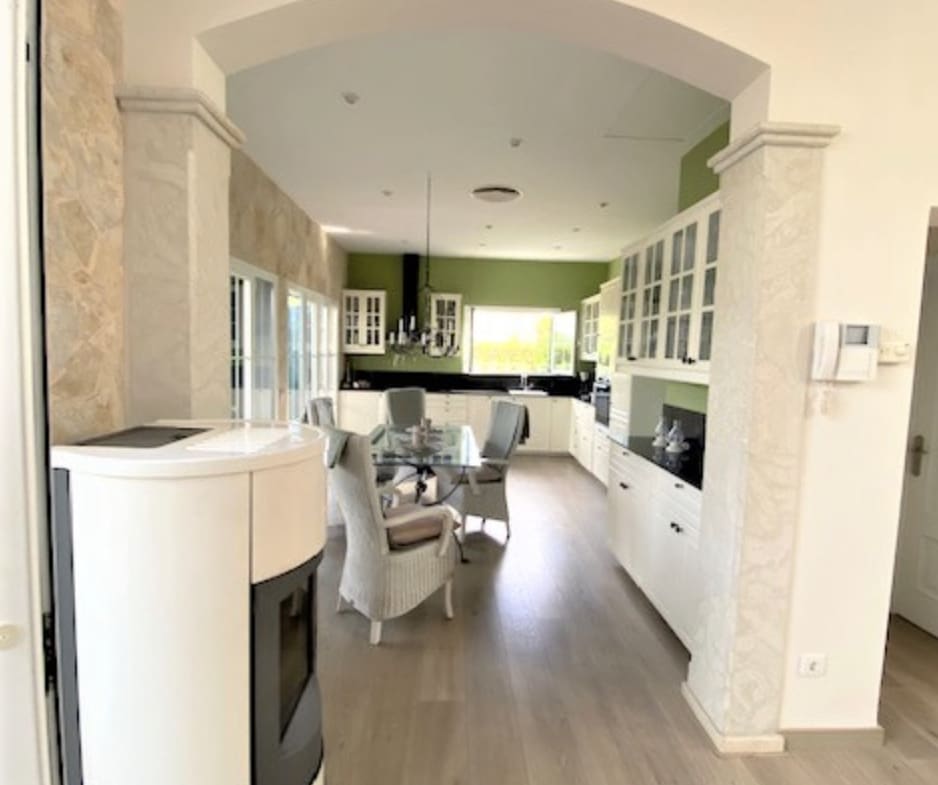 The property has been decorated with exquisite taste and meticulous attention to every detail. The floors in all living areas are covered with high quality laminate, and a large pellet stove provides a pleasant warmth. Crossing the majestic entrance door, you enter a spacious and bright foyer overlooking the beautiful garden and pool.