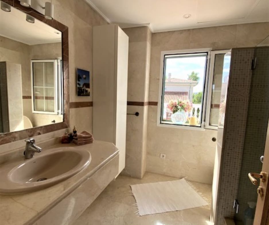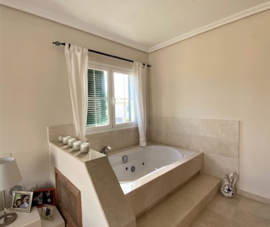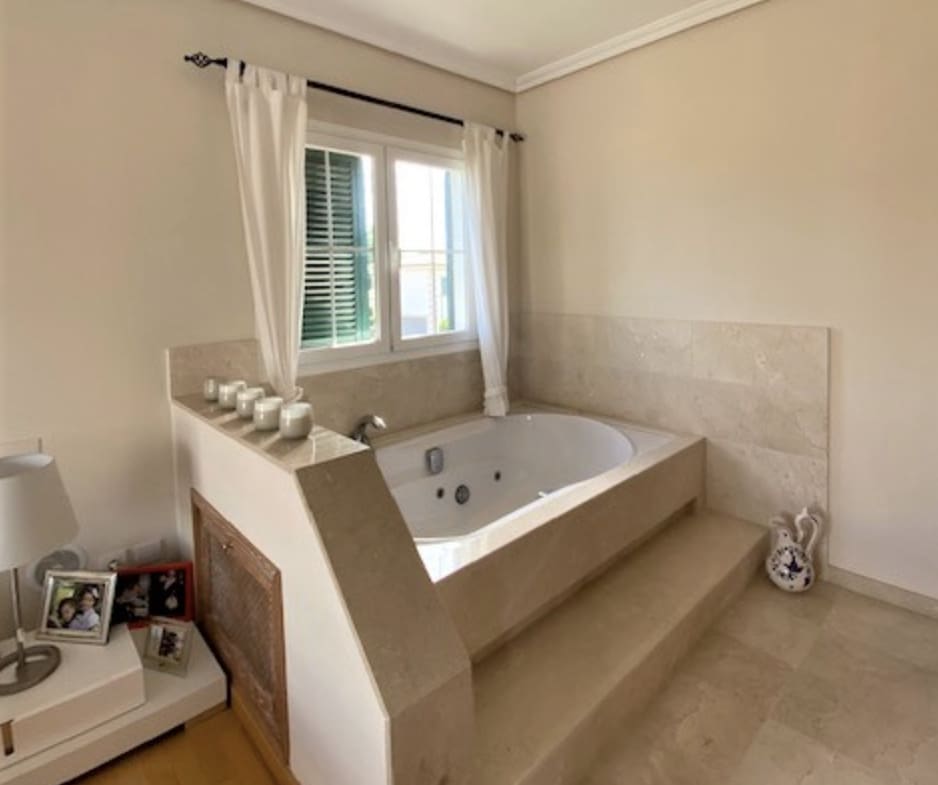 On the upper floor there are 3 bedrooms, all with en suite bathrooms and access to terraces or balconies. The master bedroom includes a Jacuzzi for comfort and luxury.