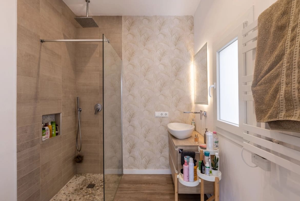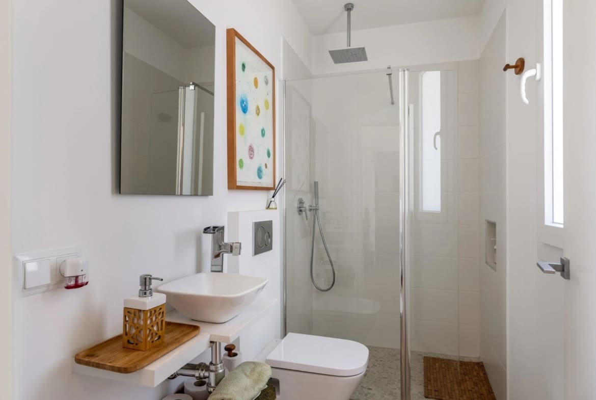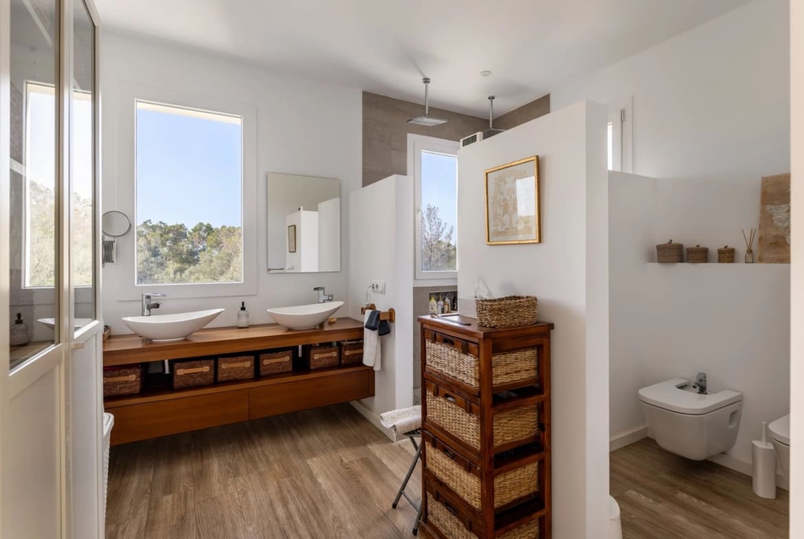 With five comfortable bedrooms, three of which open onto a terrace, and an advanced climate control system powered by both the public grid and solar energy, this villa offers year-round sustainability.