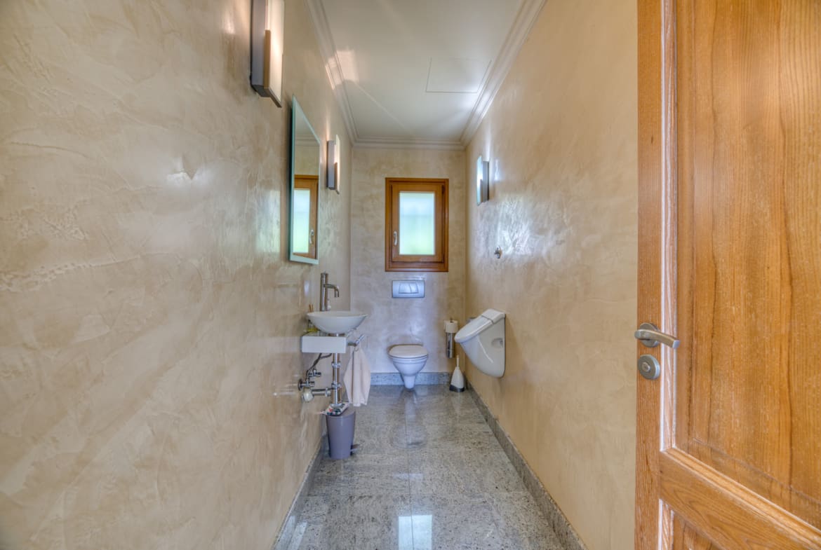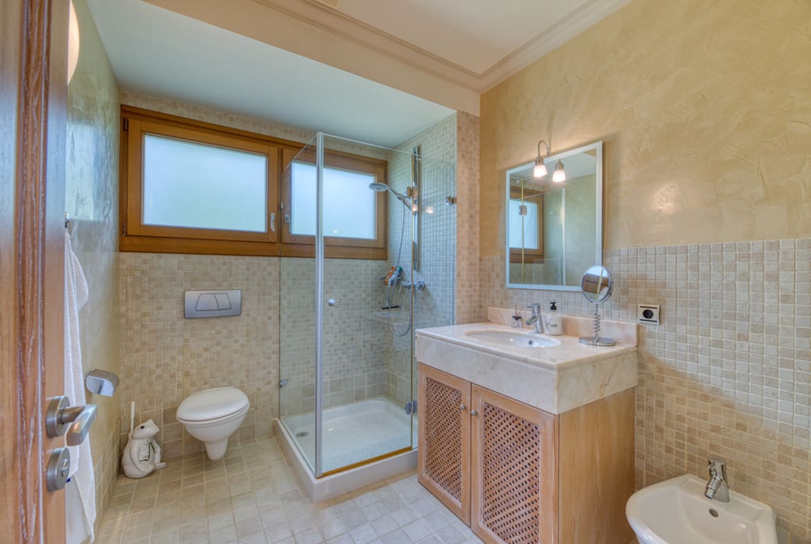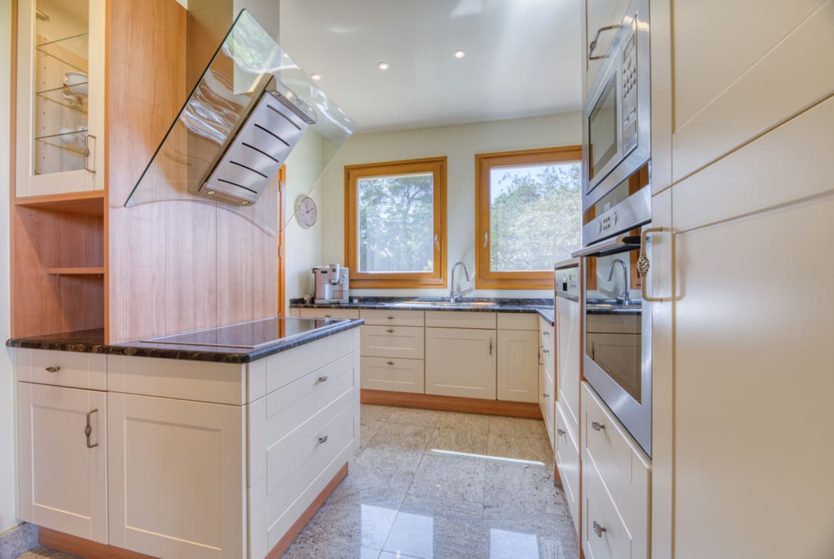 Additional features include air conditioning, central heating, electric shutters, laundry room, storage room, guest toilet, double garage and state-of-the-art alarm system.
