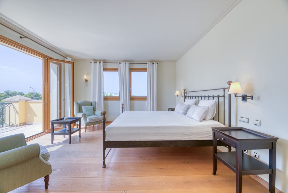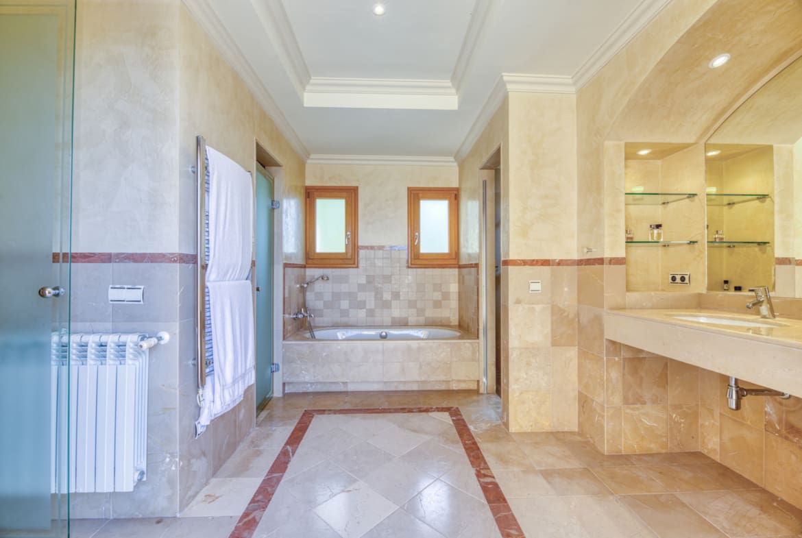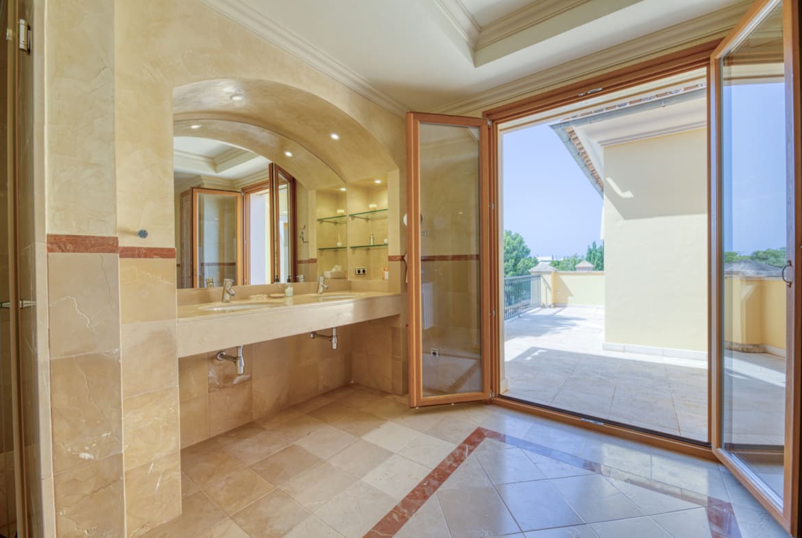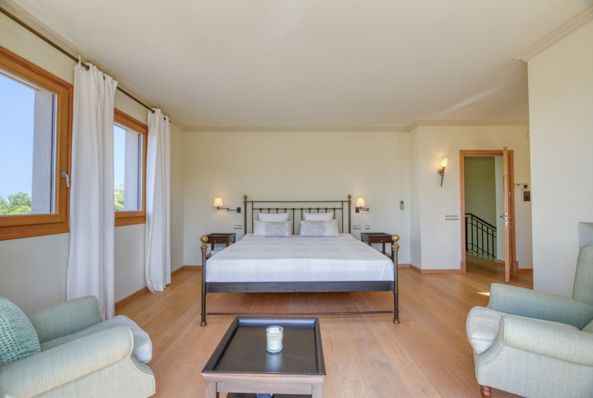 The master bedroom has a private terrace with sea views, dressing room and luxury bathroom.