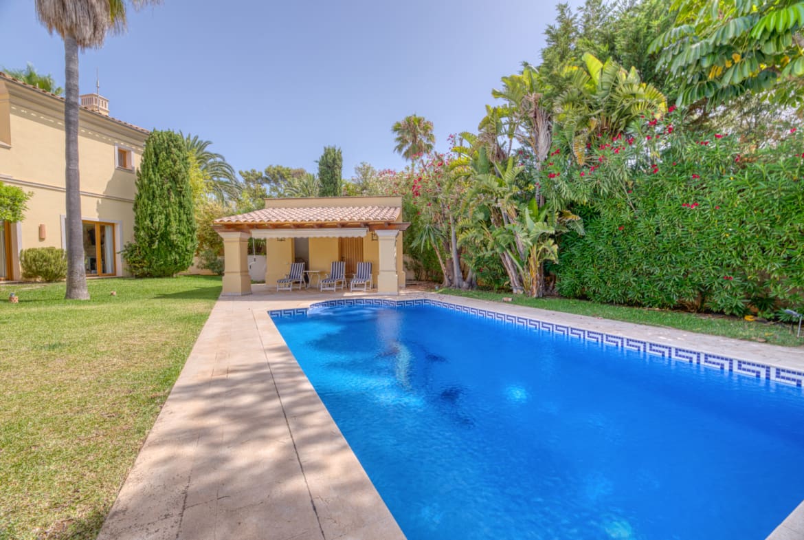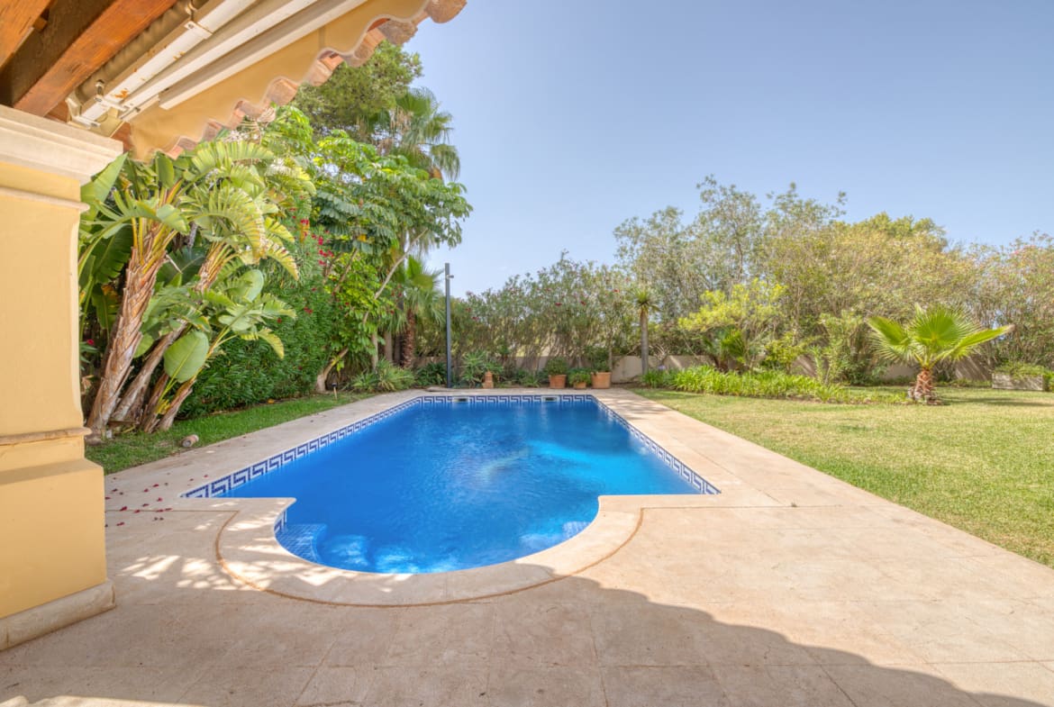 This stunning Mediterranean style villa in the exclusive area of Nova Santa Ponsa is perfect for family living in Mallorca.