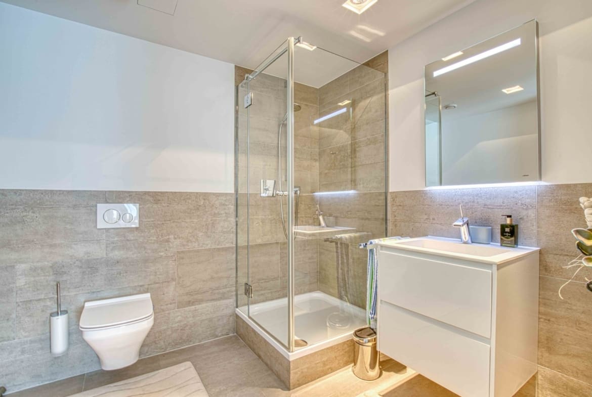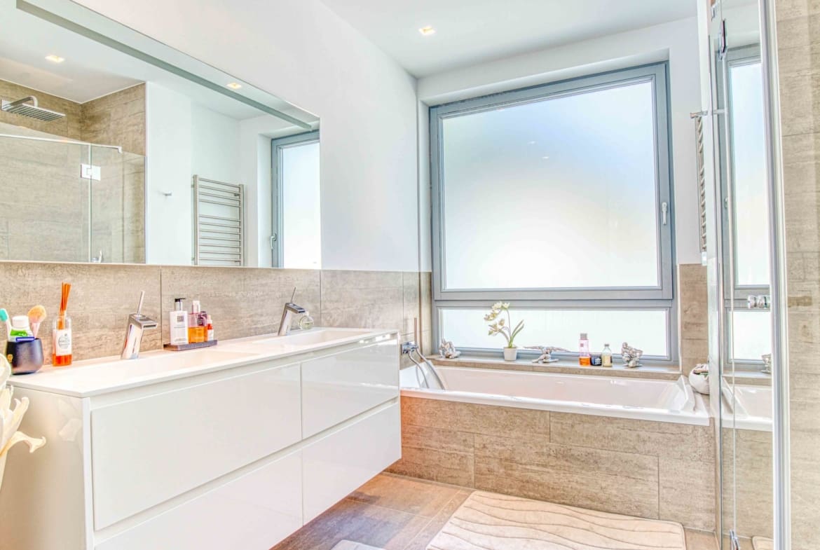 The house consists of 6 bedrooms en suite, 1 rooftop pool with summer kitchen, 1 pool (12×5) on the garden level, subway parking, elevator from the first floor to the roof terrace, sauna, gym, bedroom, underfloor heating, air conditioning, south/southwest orientation, high ceilings, doors to the roof, good privacy, low maintenance garden, solar panels (30% of the energy).