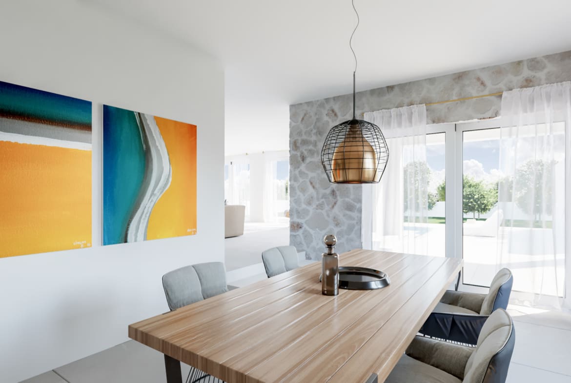Built with high quality materials, such as natural stone and wooden floors, and equipped with heat pump, air conditioning and underfloor heating, the property is designed to ensure maximum comfort.