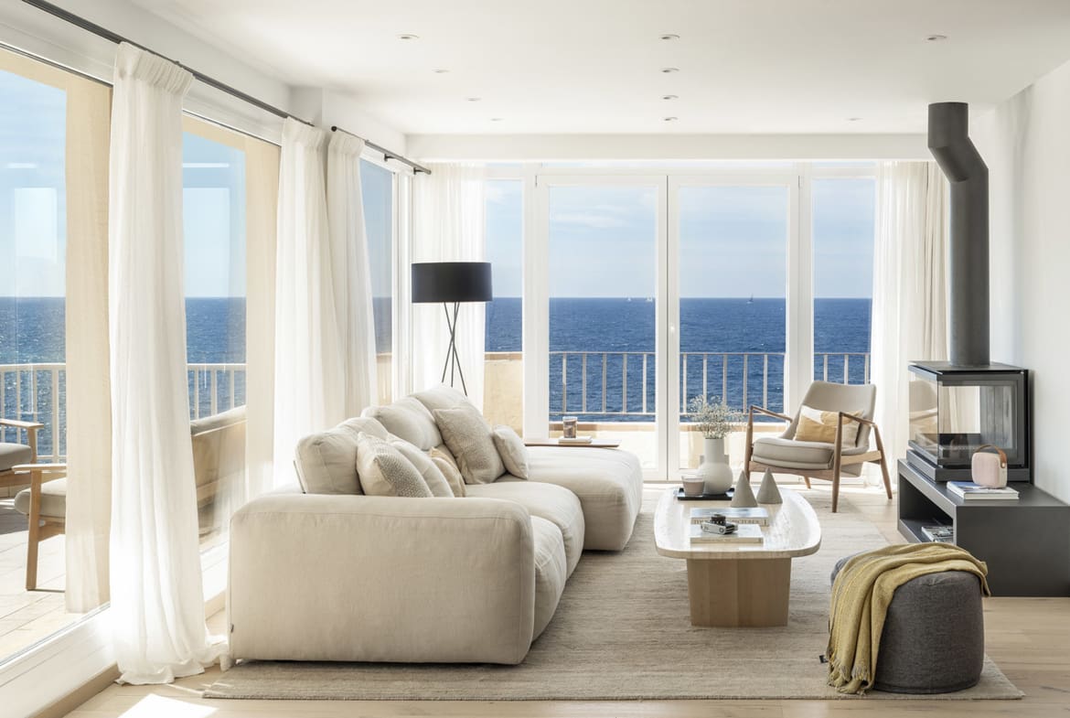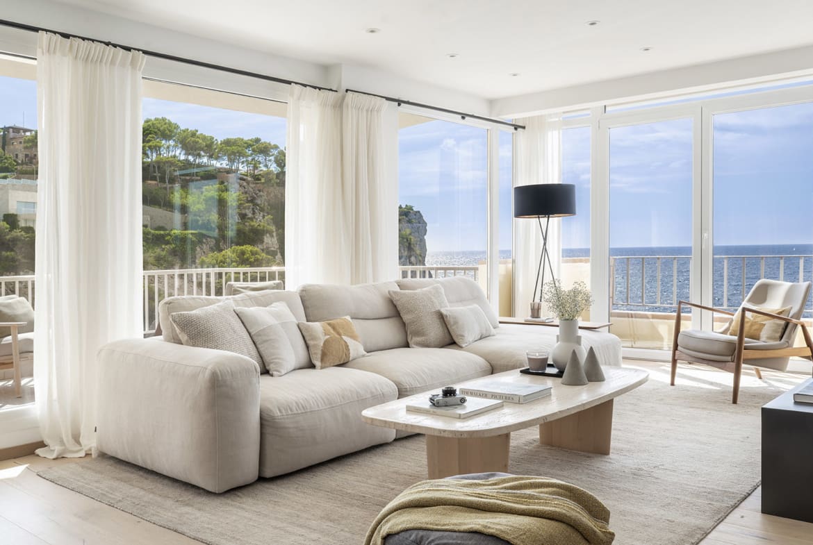 This spectacular seafront apartment is located in a quiet coastal area of Santa Ponsa, offering breathtaking panoramic views of the Mediterranean.