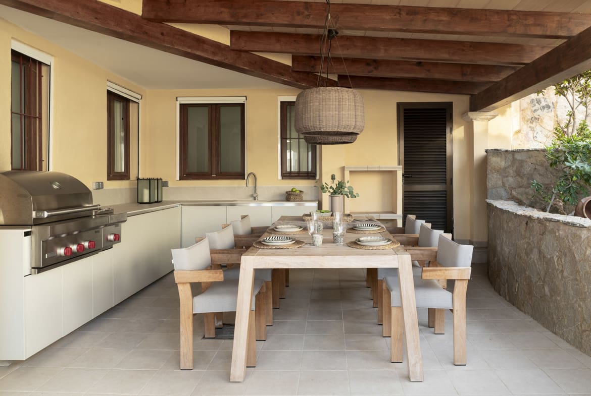 In addition, the property has two double bedrooms, including the master, and a third single bedroom. The highlight is the spacious covered outdoor dining area, with a fully integrated kitchen, perfect for enjoying unforgettable al fresco dining during warm summer evenings.