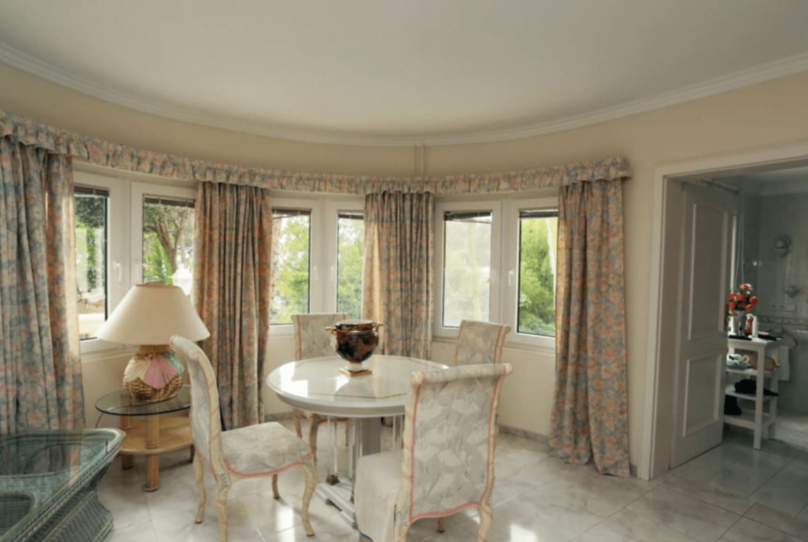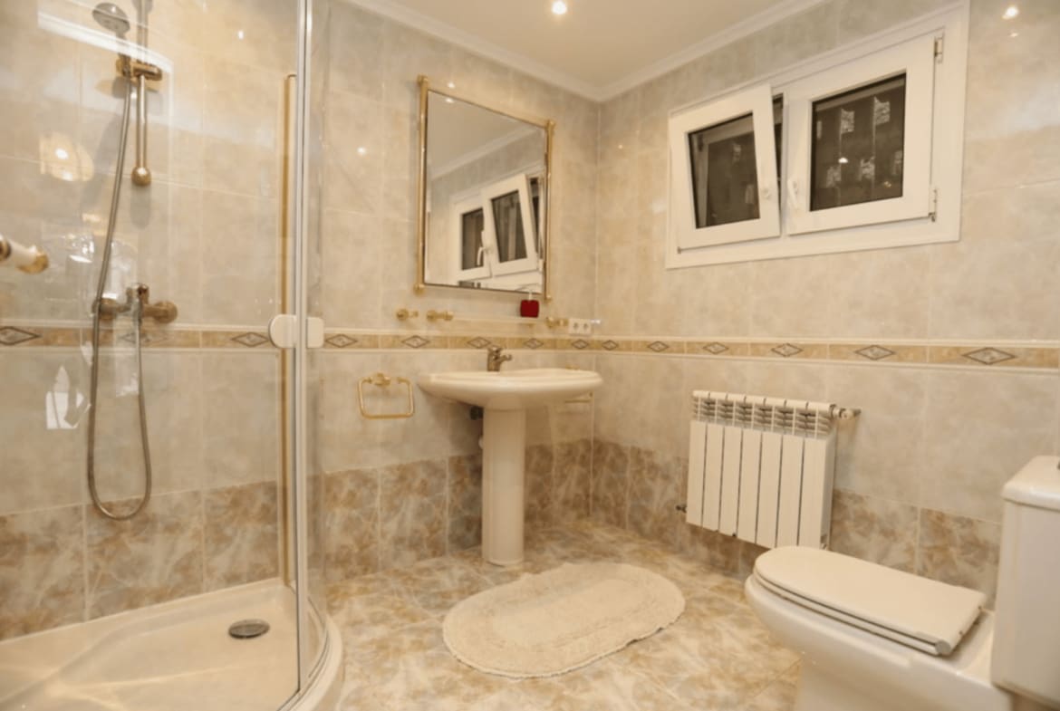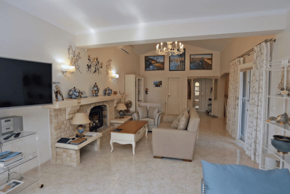 The living area of 200 sqm is distributed over 2 floors and consists of living-dining room with fireplace and exit to the terrace with beautiful views of the Mediterranean Sea, separate fitted kitchen with breakfast area, 4 bedrooms, 4 bathrooms (2 en suite), guest toilet, storage room and laundry room.